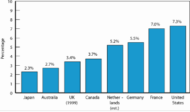 - “For example, there are significant differences in administrative overhead between public and private insurances, leading some to conclude that the excess spending by private insurance companies must constitute administrative waste. Estimates indicate that overhead/administrative costs (premiums minus claims payments) make up 14 percent of total private insurance expenditures, compared with 3–5 percent of spending in public sector programs such as Medicaid”