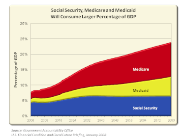 Clearly this trend cannot be sustained. And these government expenditures are only part of the snowballing costs of health care. This year we rejoice because in a depression/recession health care cost increases of 5-6% were only twice that of inflation. This is not cost containment.