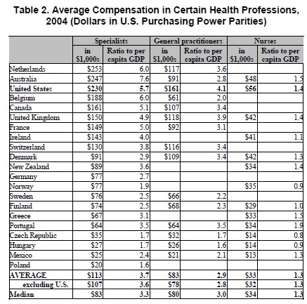 Source: Congressional Research Service (CRS) analysis of Remuneration of Health Professions, OECD Health Data 2006 (October 2006), available at [http://www.ecosante.fr/OCDEENG/70.html].