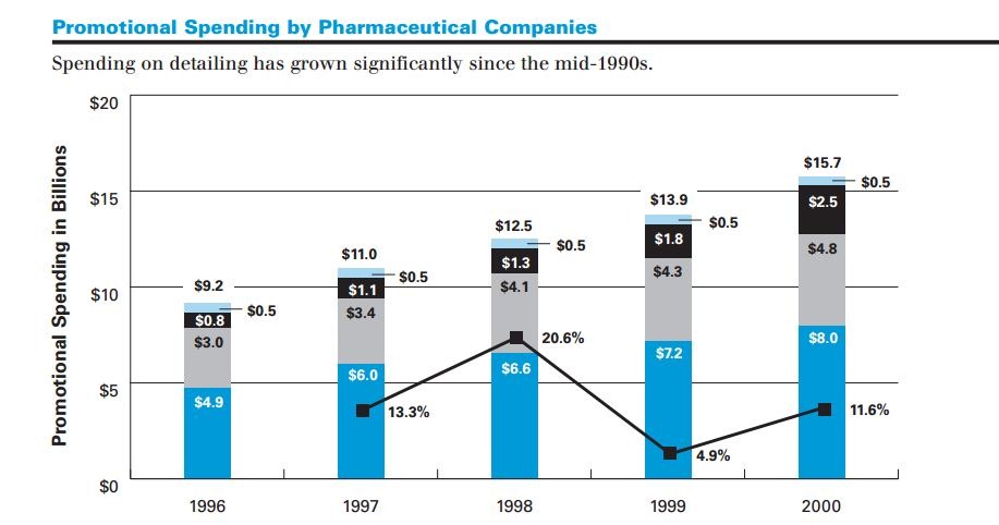 The costs of marketing to doctors, and this is admittedly old data, is reflected in this graph.