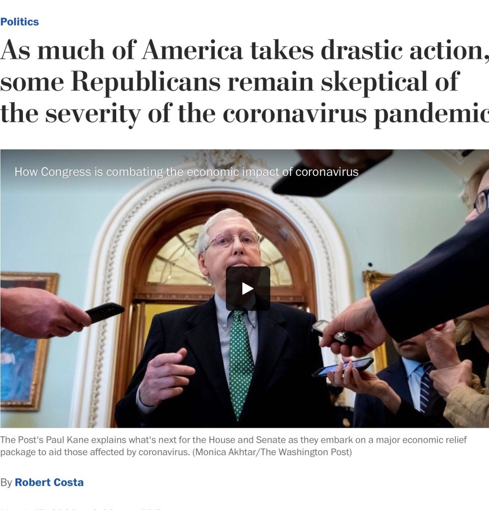 It’s a sad fact that the Republican Party and it’s president destroyed the infrastructure in the NSC and CDC set up to anticipate and respond to epidemics. Trumps tariffs have destroyed our businesses access to foreign markets and his doubling of our government’s financial deficits during what was a “good”economy makes more difficult the further deficits required to tide us over a deep recession. It will be known as the Trump recession.