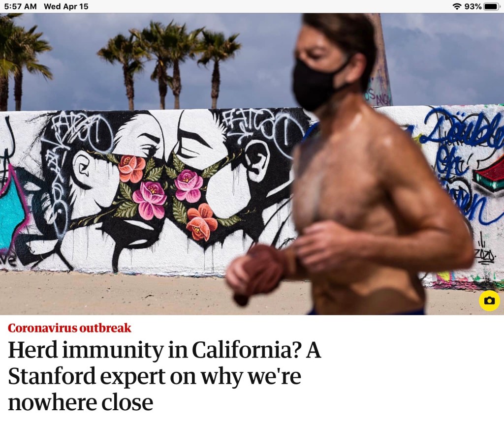 “With a disease like this, you probably need somewhere on the order of 60% or more people to have immunity in order to prevent an epidemic. Right now, if we’re at less than 5%; you would need at least ten- to twelve-fold that level. The only way to get there is to vaccinate people or else have horrific transmissions, and we can’t do the latter. So we’re going to have to continue some social distancing efforts.”