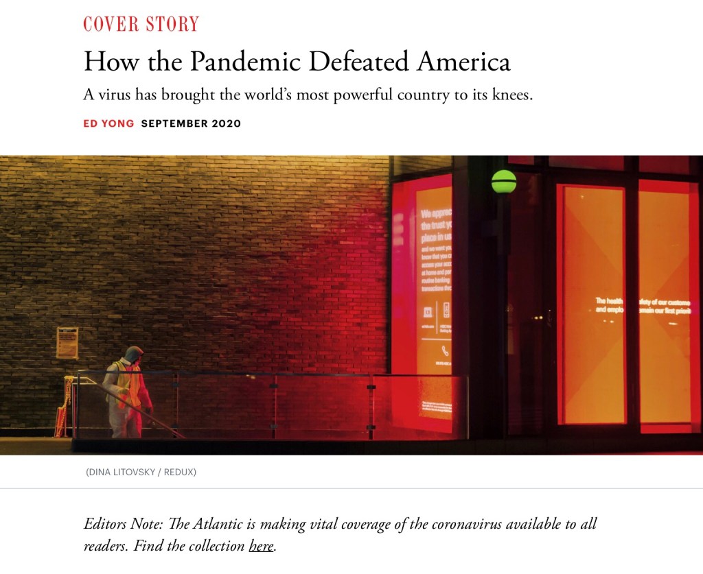 Despite ample warning, the U.S. squandered every possible opportunity to control the coronavirus. And despite its considerable advantages—immense resources, biomedical might, scientific expertise—it floundered. While countries as different as South Korea, Thailand, Iceland, Slovakia, and Australia acted decisively to bend the curve of infections downward, the U.S. achieved merely a plateau in the spring, which changed to an appalling upward slope in the summer. “The U.S. fundamentally failed in ways that were worse than I ever could have imagined,” Julia Marcus, an infectious-disease epidemiologist at Harvard Medical School, told me.”