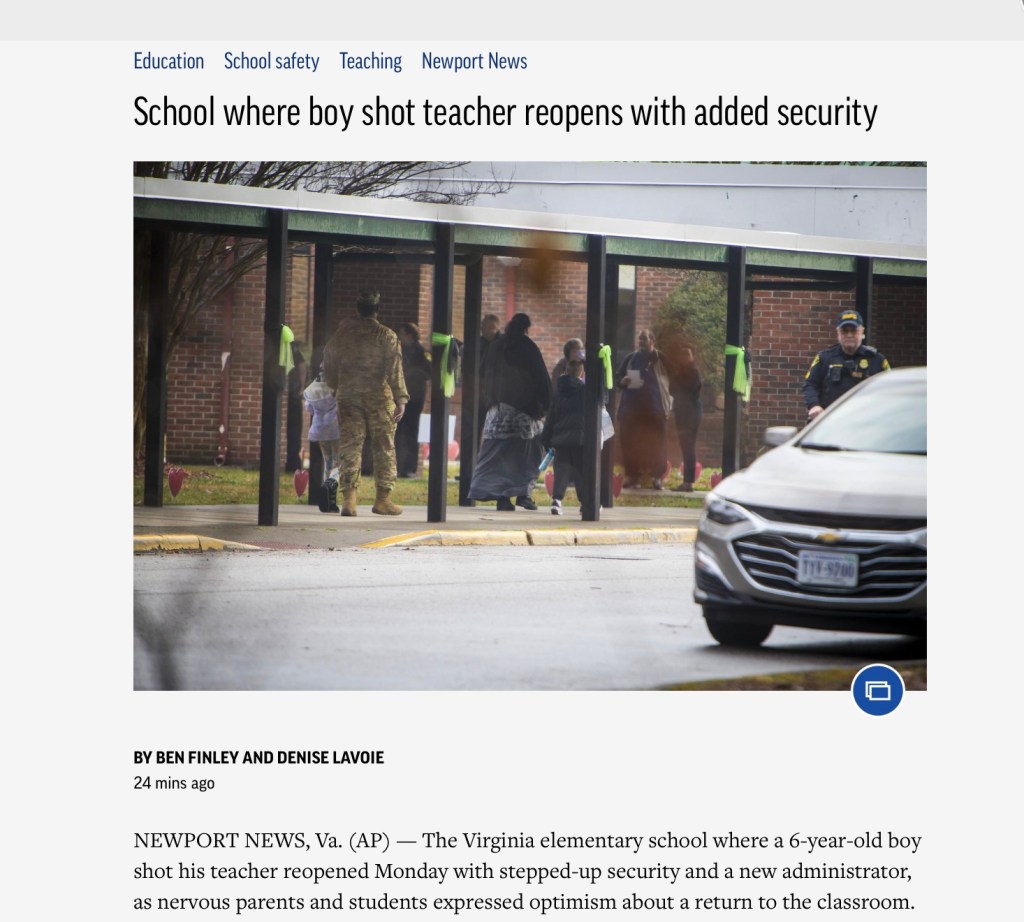 “We did not have a situation where someone was going around the school shooting,” Newport News police chief Drew told reporters. “We have a situation in one particular location where a gunshot was fired.”