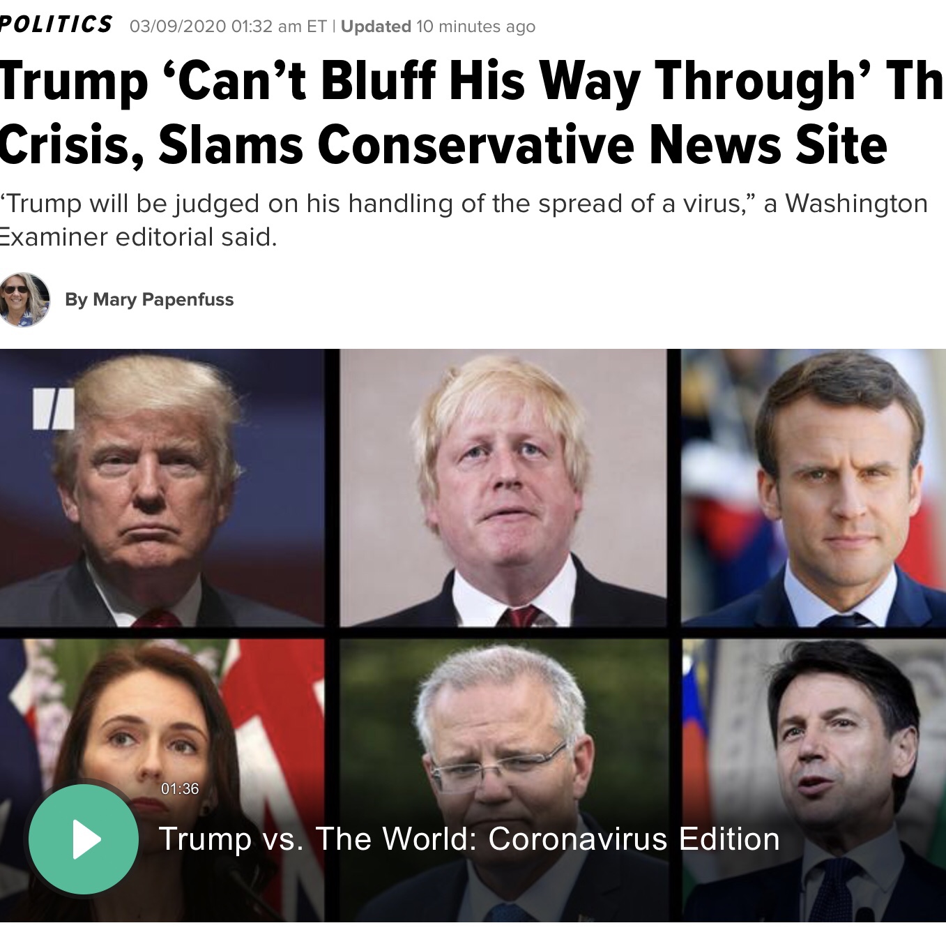 “Perhaps Trump’s greatest blunder was turning down the offer of a German-made diagnostic test approved by the World Health Organization and taken up by many countries. The US government’s own painfully slow progress led to a nationwide shortage of test kits at the most critical moment. It was reported that just 11,000 tests have been conducted in America so far, whereas South Korea is carrying out 10,000 tests per day.”