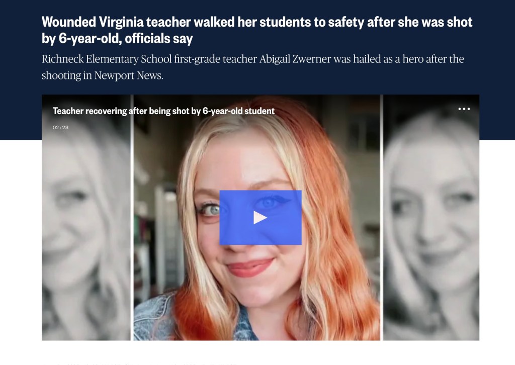 Medicynical note: It’s truly absurd that the owner of the gun has not been charged. Newport News clearly has more problems than the 6 year old shooter. I’m not sure whether the delay in attributing responsibility and prosecution is worse than the actual shooting. It’s a grotesque.